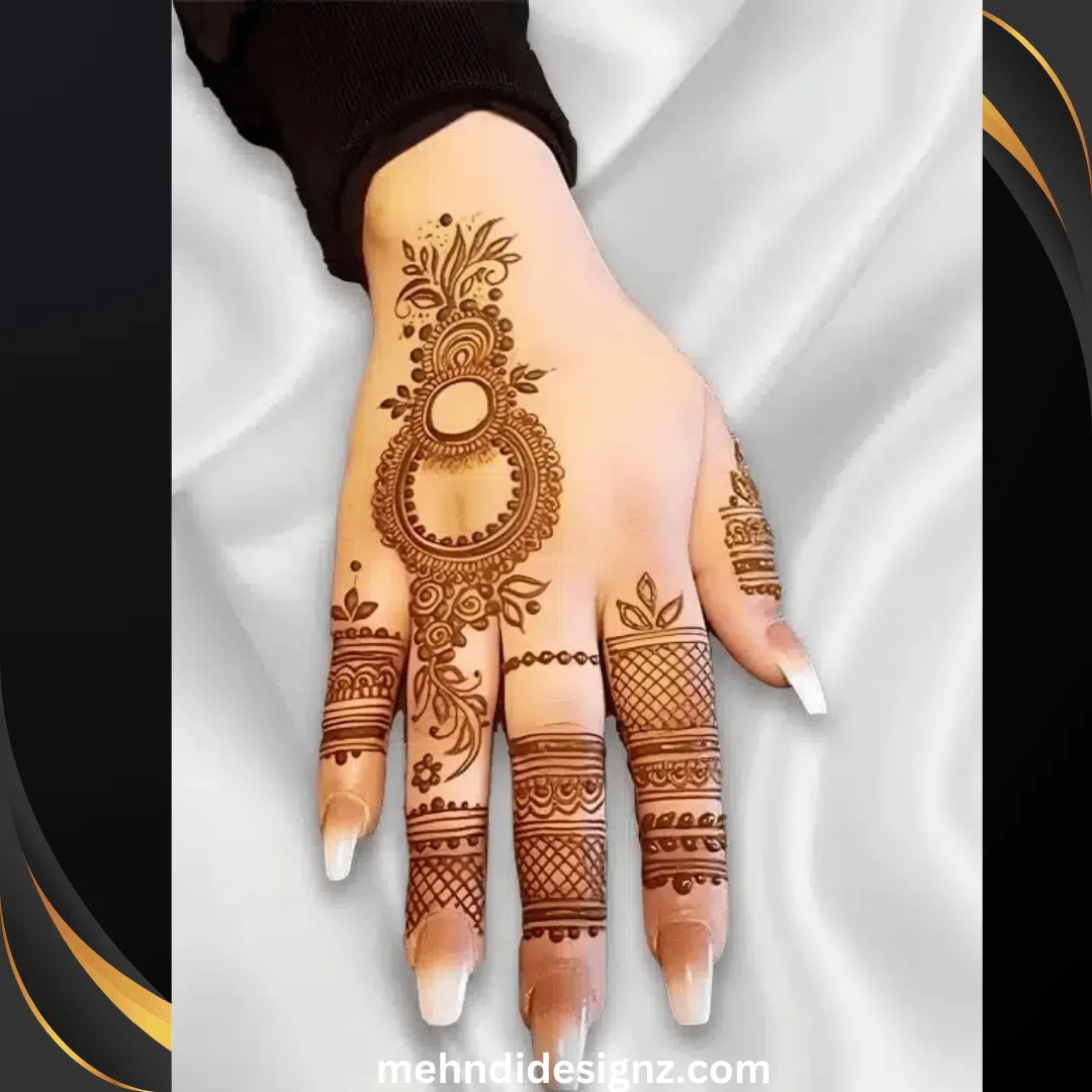Backhand mehndi designs are often more obvious and so provide the ideal canvas for expressive patterns. The following are some often used and trendy concepts: