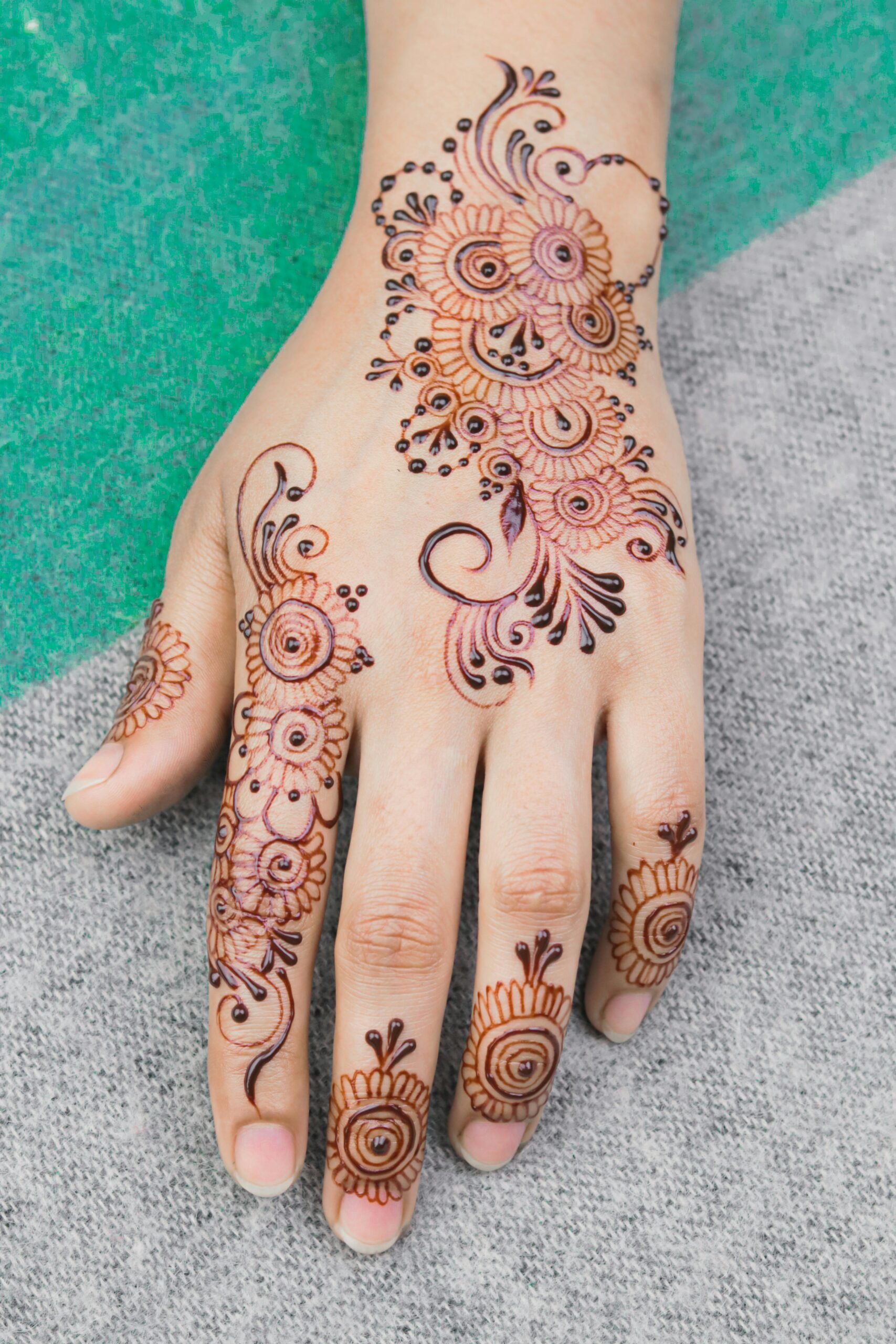 - Weddings: Brides typically have full-hand designs, but friends and relatives can choose simple mehndi patterns either front or back hand.